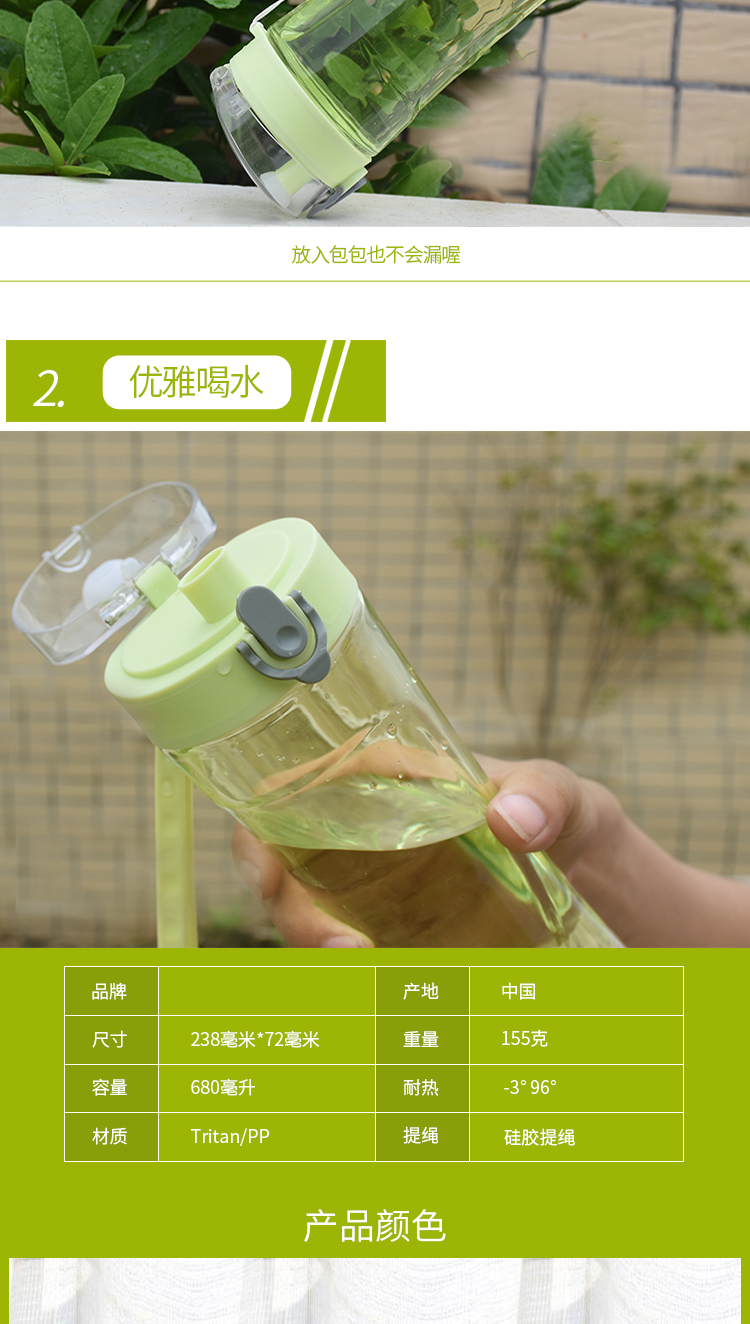 大容量戶外運(yùn)動(dòng)水壺 塑料杯子 隨手杯帶茶隔 便攜水杯tritan 太空杯 680ml